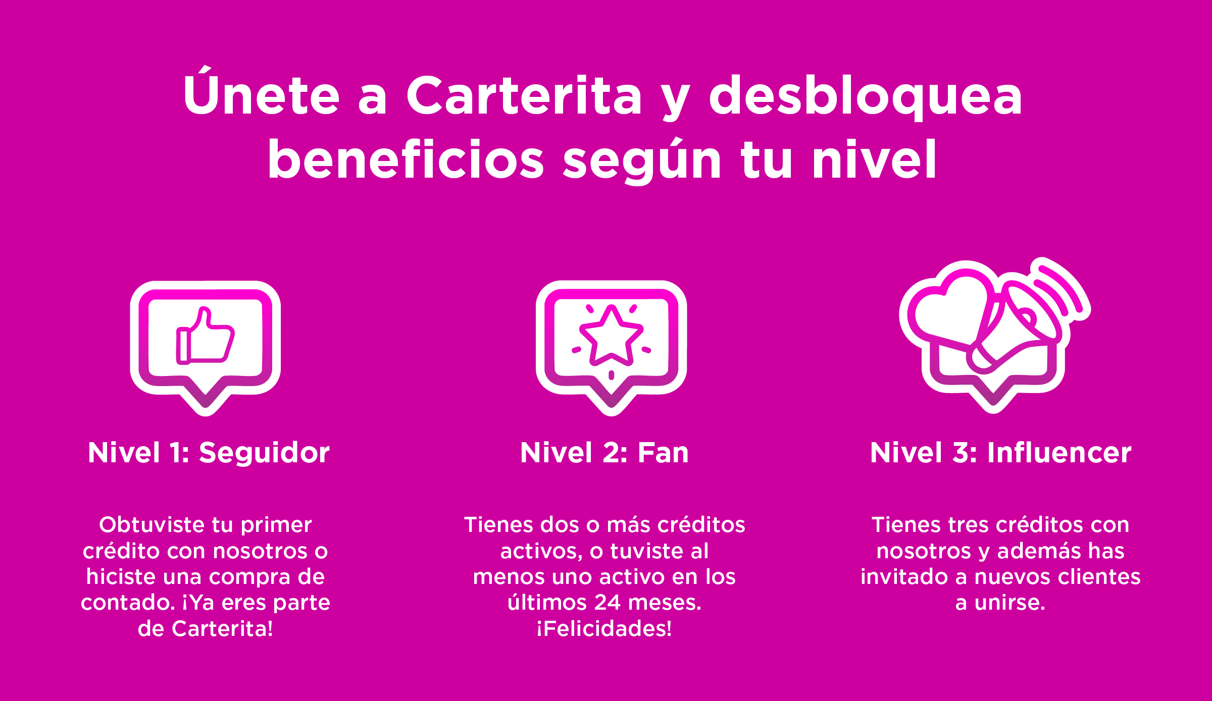Al obtener un crédito y aceptar los Términos y condiciones eres parte del Programa en automático. También al hacer alguna compra de contado y registrar tus datos, aceptando los T&C. El ser parte del programa no genera un costo.