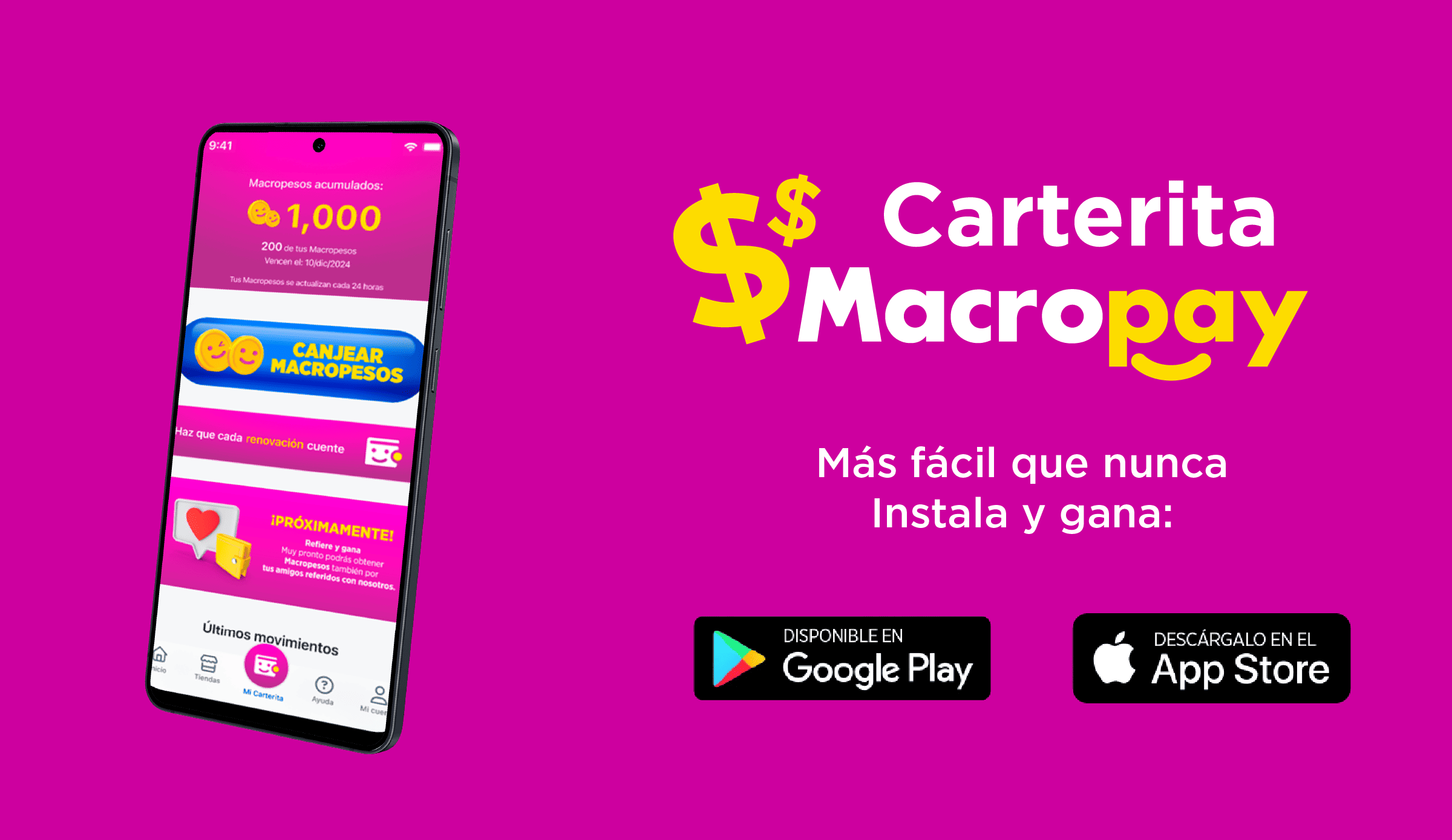 • Al hacer tus abonos de tus financiamientos, cada abono te da Macropesos.